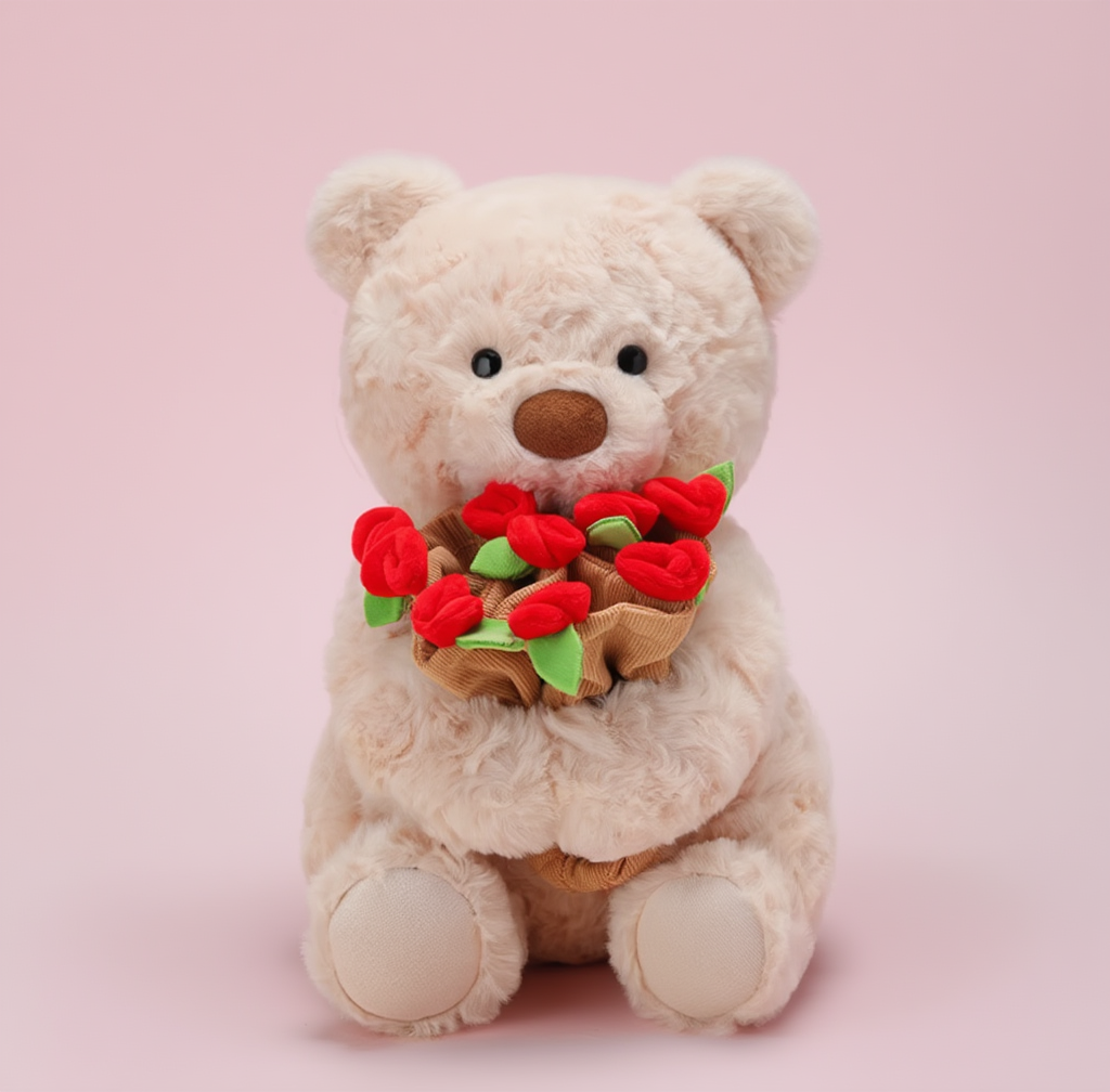 PLUSZOWY MIŚ Z BUKIETEM – PREZENT, KTÓRY ROZCZULA